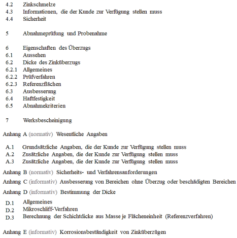 | DIN EN ISO 1461 | Durch Feuerverzinken auf Stahl aufgebrachte Zinküberzüge (Stückverzinken) | Anforderungen und Prüfungen |