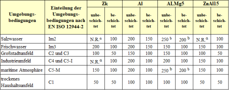 Korrosionsverhalten nach Umgebung