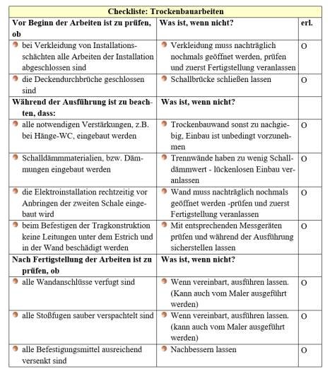 Checkliste bei Trockenbauarbeiten