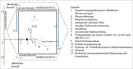 Wird jedoch - wie in den meisten Fällen üblich - die Löschwasseranlage durch Ent-nahme aus dem Trinkwassernetz versorgt bzw. nachgespeist, beginnt in diesem Falle an der Löschwasser-Übergabestelle der Geltungsbereich der DIN 14462.