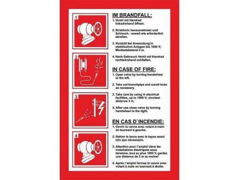 Beispiel einer Handhabungsfolie Wandhydrant für formfesten Schlauch (mehrsprachig)