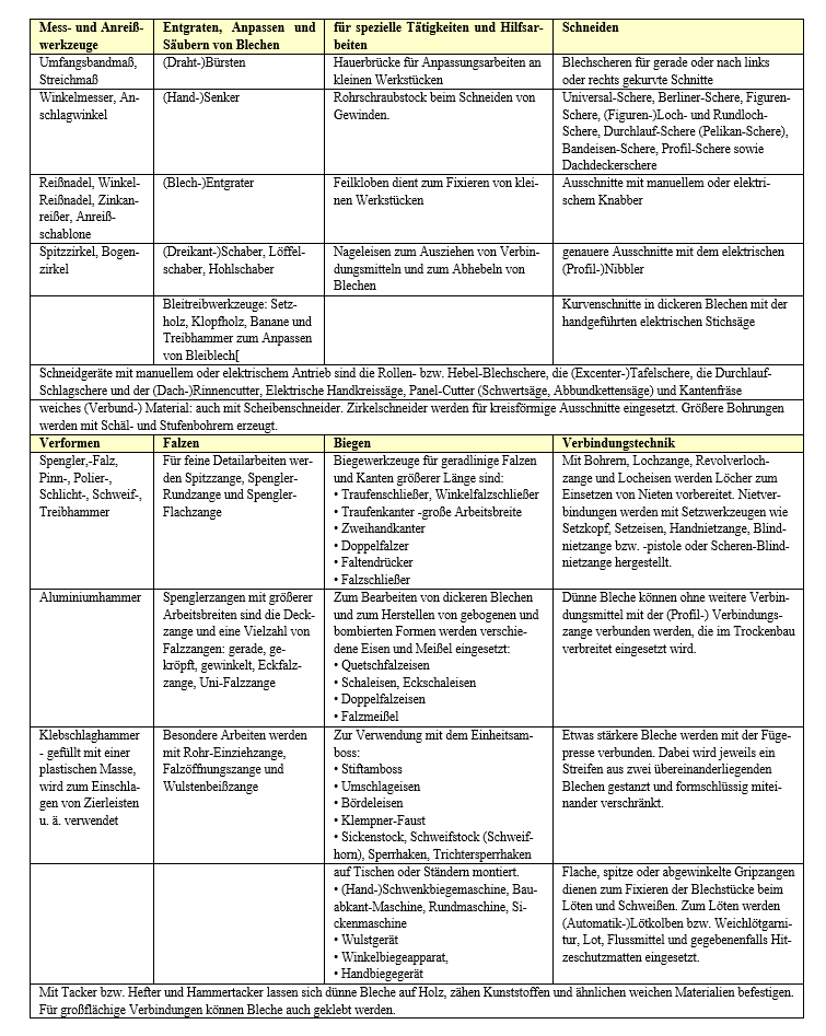 Sie beherrschen die Verbindungstechniken, insbesondere. Falzen, Löten und Schweißen,