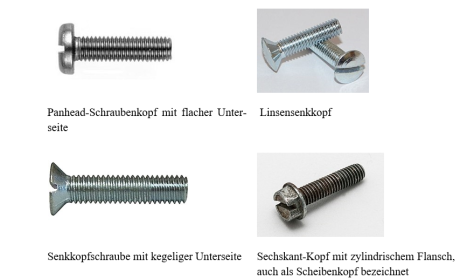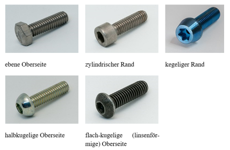 Man unterscheidet die Kopfform von Schrauben nach den folgenden Gesichtspunkten: