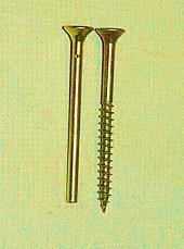 Spanplattenschrauben mit zylindrischer Kontur und spitzen Flanken, dienen zum Eischrauben in Spanplatten und Gipskartonplatten, auch zum Einschrauben in Dübel verwendet.
