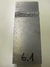 Verbindungsfläche einer Sprengschweißung mit den typischen Wellen-Strukturen