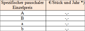 Grundlage der Vergütung für die im Vertrag zwischen AG und AN vereinbarten Leistungen sind die spezifischen Pauschalpreise A und B, sowie a und b aus dem durch den AN verpreisten LV. Diese Preise sind die Grundlage für die Angebotsbewertung.