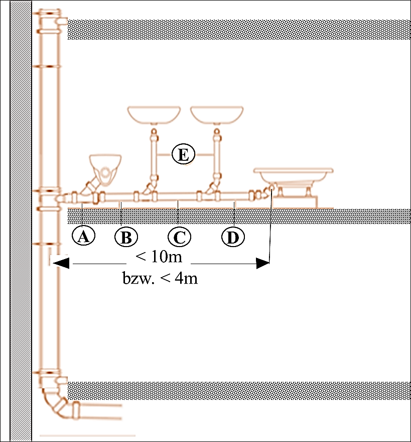 Bei den Anschlussleitungen wird zwischen Einzel- und Sammelanschluss, bzw. zwischen belüfteten und unbelüfteten Einzel- oder Sammelanschlussleitungen unterschieden.