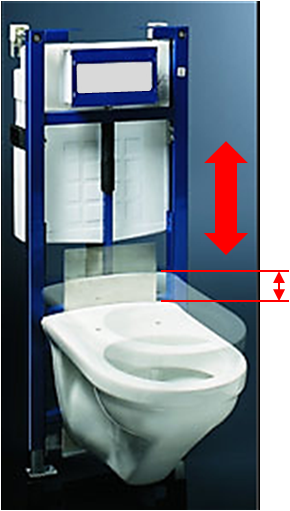 Es kann auch hilfreich sein, höhenverstellbare Toiletten einzusetzen. Dies begründet sich insbesondere dadurch, dass einerseits die Menschen unterschiedlich groß sind und die Fabrikate der Rollstühle eine Höhendifferenz bis zu 10 cm haben können. So ist es vielen Menschen nicht oder zumindest nicht leicht möglich, auf das WC mit einer Höhe zwischen 46 und 48 cm zu wechseln. Durch eine höhenverstellbare Toilette wird zudem das Aufstehen deutlich erleichtert.