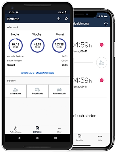 Leistungsmerkmale eines solchen Zeiterfassungssystems App/Bildschirm sind: