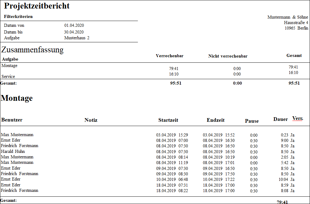 Berechnet automatisch alle Tages-, Wochen, Monats- und Jahresstunden der Mitarbeiter